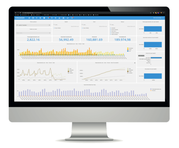 Forganiser komt met een handig dashboard die controle geeft over je bedrijf. In één oogopslag krijg je de werkstatus van je personeel en hun loonkost. Wil je de loonkost van één bepaalde vestiging? Of een tijdsperiode? Of zelfs per personeelslid of klant? Het dashboard is gemaakt om snel data te analyseren van welke parameters ook.